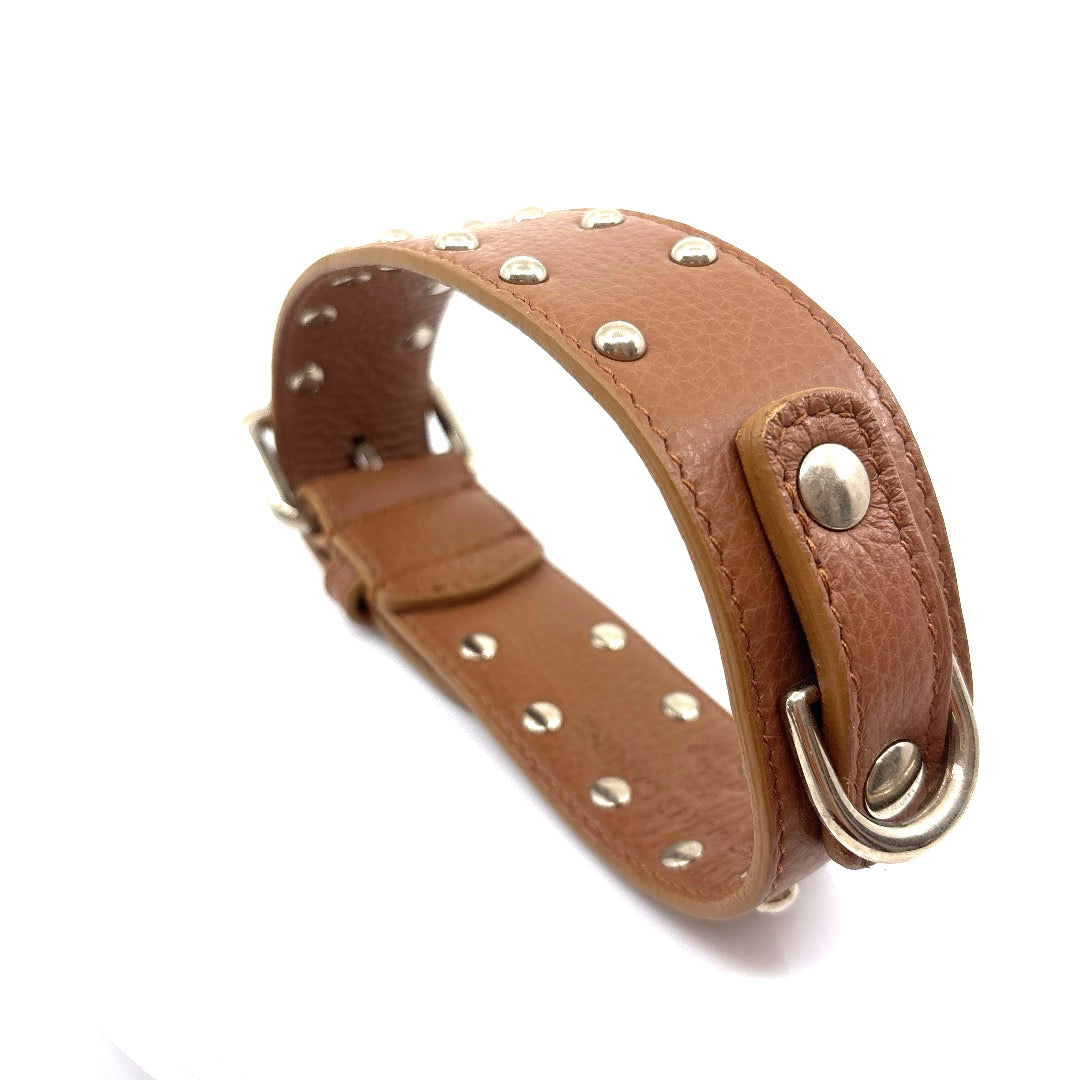COLLIER CUIR SOUPLE CAMEL DECORARTION CLOUS RONDS TAILLE 37 A 42 CM LARGEUR 4 CM